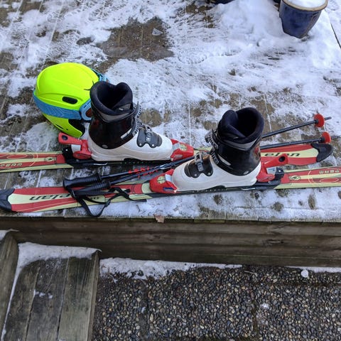 Slalomskidor inkl hjälm o stavar