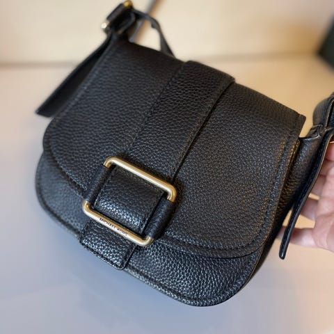 DKNY väska i läder för kvinna i svart färg. Axelremsväska med justerbar rem och kedjedetaljer.