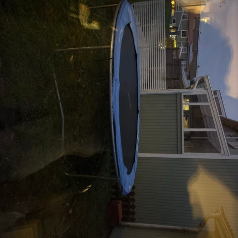 Studsmatta är bräda 140 cm med skydnät som suttit inomhus.