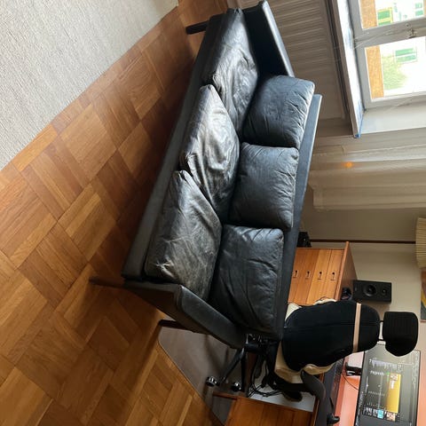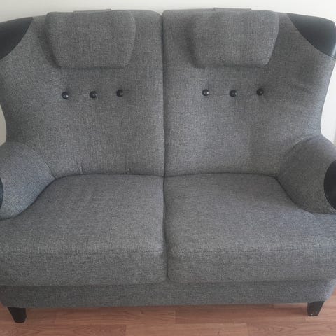 Två suttit läder soffa i hyfsat skick, funkar bra,bekväm.vill bara bli av med den så fort som möjligt har tyvärr itne plats för den längre. Endast att hämta kommer ej åka och lämna iväg den.