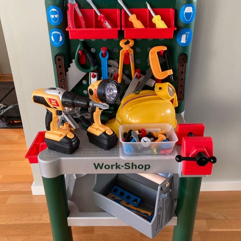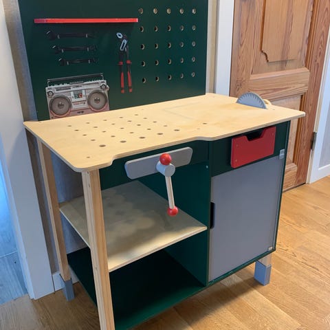 Fullt fungerande. Stabil. Man kan låtsas borra, spänna fast material osv.