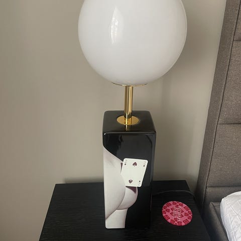 Fin lampa, en lysande box med fyndig text. 40x9x12 cm