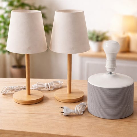 2st.Bordslampa med vit rippad glaslampa och svart metallfot. Lampan har en modern design med rund bas och böjd arm som håller glaslampan. Passar för användning som dekorativ belysning i olika rum.