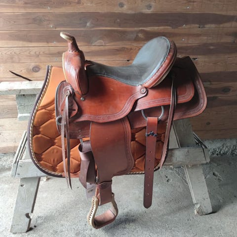 Bomlös westernsadel med utbytbar pommel. Storlek 17”