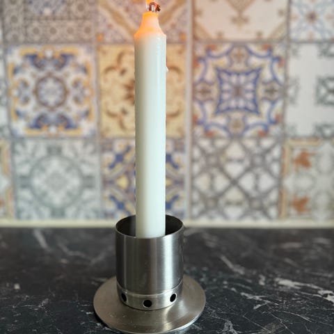 Kattviksljusstake helt ny i kartong. Stormglas, bred fot som står stadigt. Kan användas både inne och ute. Avsedd för ljus med diameter 50.