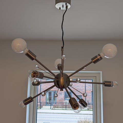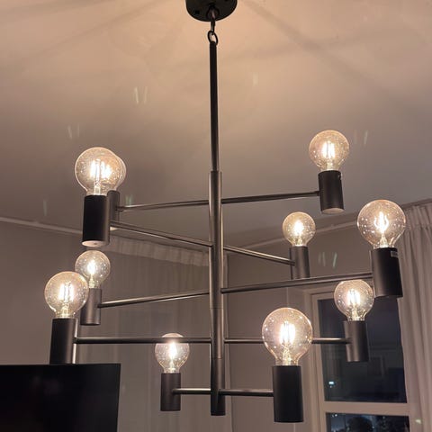 Herstal manola silver taklampa i metall, lampan har en modern och industriell stil med flera ljuskällor 12. Passar för takmontering och ger ett dekorativt ljusinsläpp i olika rum.