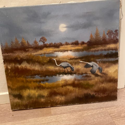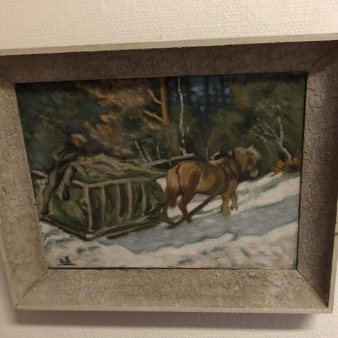 Oljemålning, pannå, handmålad ram, målning, tavla, konst.