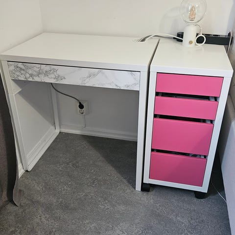 Fint och praktiskt set med skrivbord ( 105 x 50 cm), hurts på hjul ( 35 x 50cm) tillsammans 140 x50 cm och kontorstol.