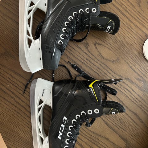 Svarta ishockeyskridskor för junior/barn i storlek 38,5 / 5D av märket CCM, modell 9355.