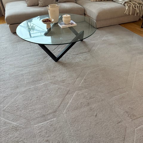 Säljer en stilren och tidlös ullmatta i svart/grått, inköpt på Posh Living 2021. Mattan är knappt använd och i mycket fint skick.