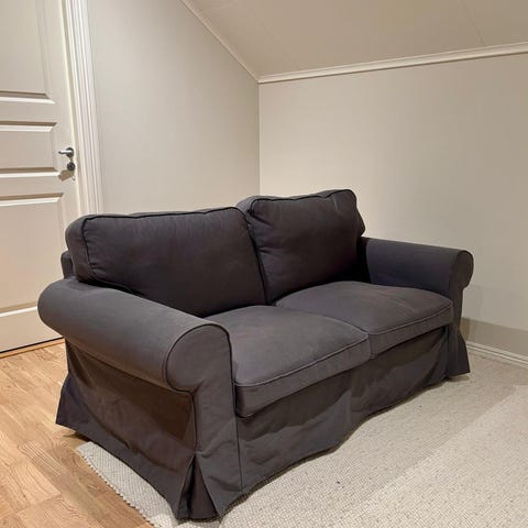 Antracitfärgat tyg. Vit extraklädsel medföljer. Finns på Skogsbrynet, Haga.