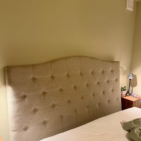 Säljer en stilren grå sänggavel från Mio. Har stått placerad på golvet bakom sängen och är sparsamt använd. Mycket bra skick utan fläckar, skador eller andra anmärkningar.