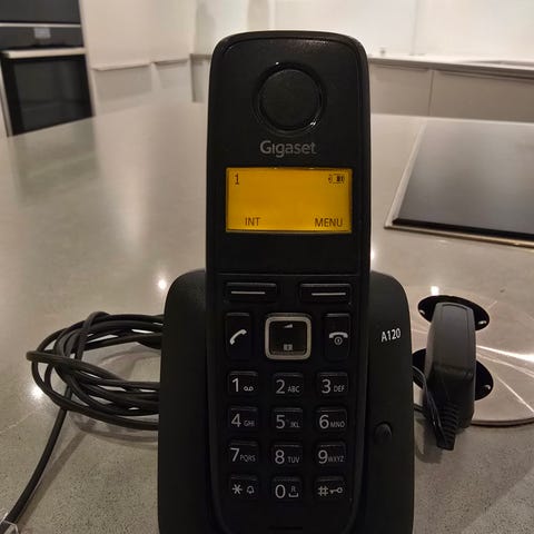 Säljer Siemens Gigaset SL 450 trådlös hemtelefon, det fungerar som en mobiltelefon inom hemmet. Komplett med sändaren, laddaren, instruktionsbok, enligt bild.