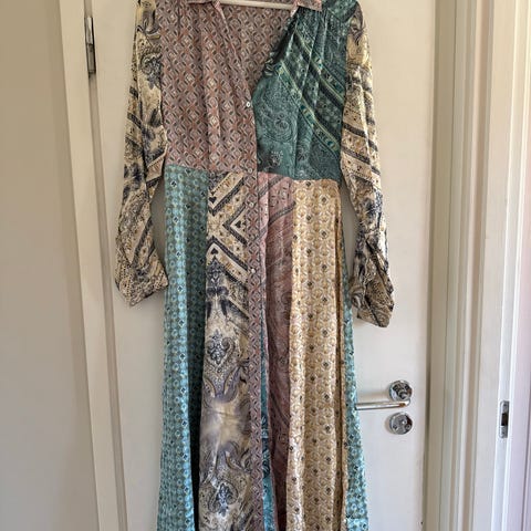 Klänning 94 cm lång, från armhålan till armhålan är 50 cm.