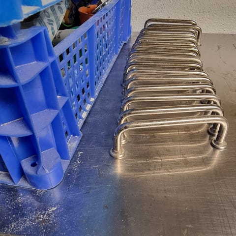 12 st retro kökshandtag vitt trä mässing. CC 87 mm. Något gulnade. Obs bara 3 m skruv.