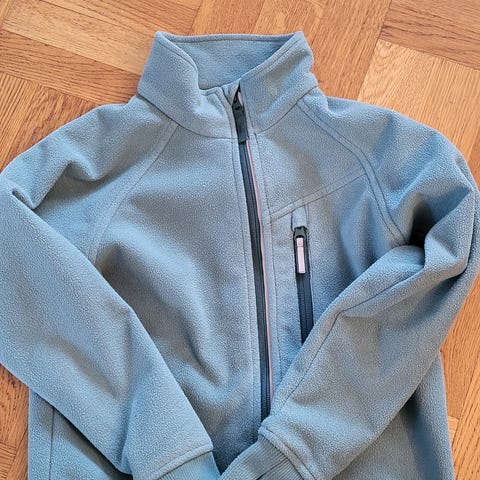 Polarn O. Pyret fleecejacka för barn i storlek 86. Jackan är blå och tillverkad i fleece, vilket ger värme och komfort. Designad för unisex-användning med dragkedja framtill och ribbade muddar vid ärmsluten för bättre passform.