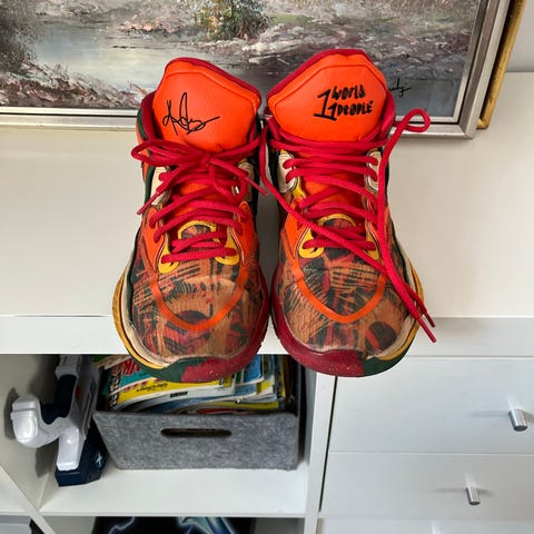 Nike KD 14 basketskor med mönstrat mönster. Bra basketskor som fungerar för alla typer av spelare oavsett erfarenhet. Skorna har ett bra grepp och är väldigt stabila.