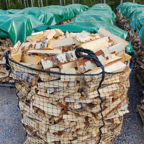 Säljer vedsäck på 40 liter som är 35cm lång, fylld med torr och eldningsklar ved.