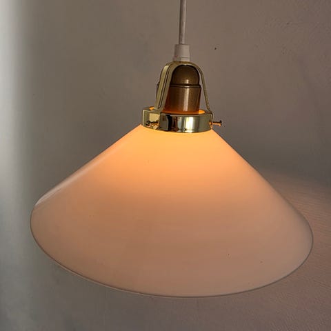 En skomakarlampa i fint skick. Fungerande el. Ojordad kontakt. För tak eller fönster. Diameter 25 cm. Sladdlängd 50 cm.