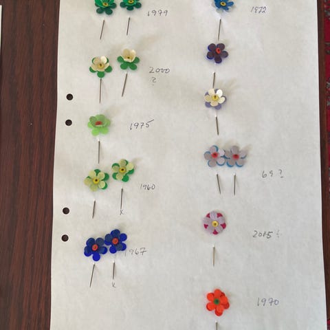 • Blandade metallknappar, pärlemor, plast, retrofärger och ovanliga modeller