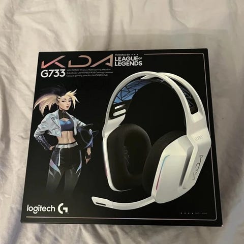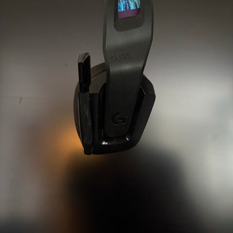 Logitech G535 trådlöst gamingheadset i svart färg. Utrustat med USB-kabel för laddning och trådlös anslutning. Designat för spel med fokus på komfort och ljudkvalitet.