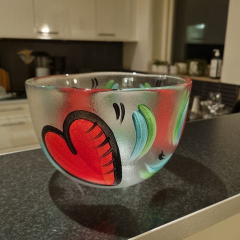 ”Skål 2”: Höjd 10 cm, bredd 17 cm.
