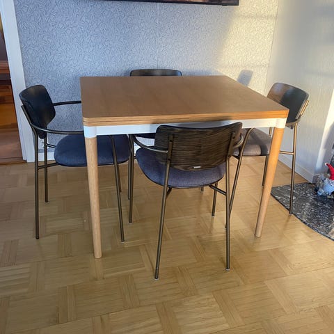 Säljer vårt stilrena och mycket gedigna Nord matbord från Bolia, inköpt nytt i butik 2021. Säljes på grund av flytt.