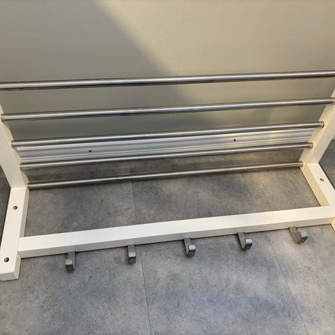 Liten hatthylla i svart metall.