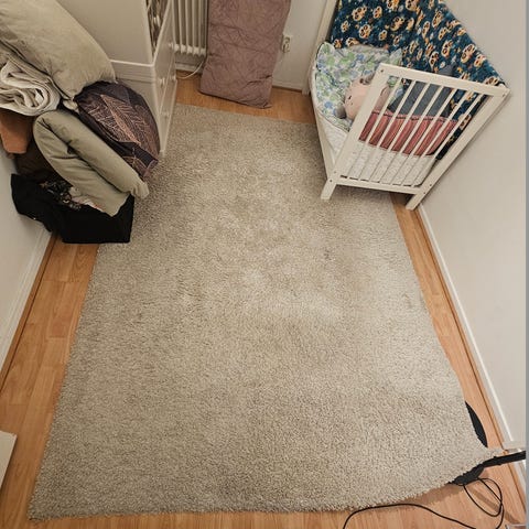 Stoense matta IKEA 130cm. Färg off white / beige. Bra skick. Hämtas på Östermalm. Legat i ett oanvänt gästrum.