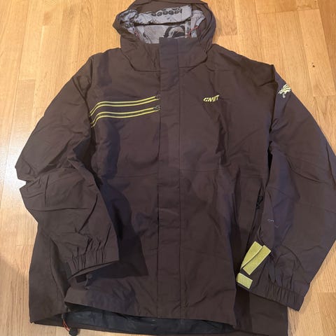 Fodrad jacka med huva och dragkedja, försedd med snölås.