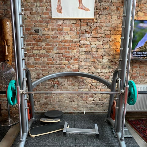 Träningsmaskin i mycket bra skick. Mulitfunktionell träningsmaskin där du kan träna flera muskelgrupper i samma maskin. Oberoende justerbara lyftarmar.