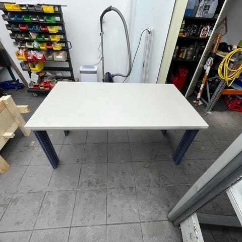 En arbetsbänk i okay skick. Stått ute under pressening under ett år, då den tagit lite visuell skada. Men ingen funktionell nedsättning.