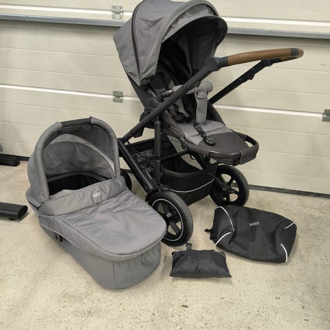 Britax smile |||/4 chassi med brunt handtag och punkteringsfria däck. Handtaget är skavt (se bild), annars i gott skick.