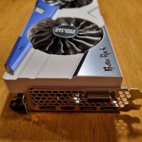 Ett Asus 1080 grafikkort, kortet funkar utmärkt och håller en bra temp.