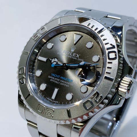 Säljer nu 1st Original Rolex Yacht-Master 40 i stål och platina med blå urtavla.