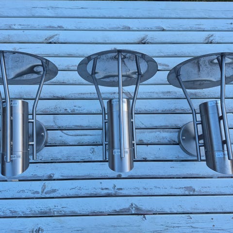 Säljer 4 st fasadbelysningar i borstad stål (bild 1 & 2) samt 2 st fasadbelysningar i galvad stål med antingen skymningsrelä eller rörelsesensor. Dessa var ett felskick från leverantören som aldrig varit monterade. (Därför jag inte vet vilken funktion sensorn har) . Säljes för 100 kr styck.