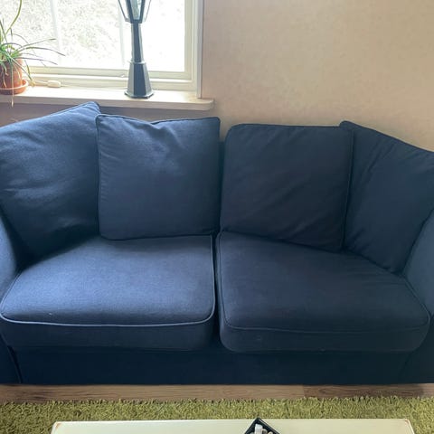 Blå Kiviks 2-sitssoffa. Mycket bekväm. Säljes pga. förändrade familieförhållande.
