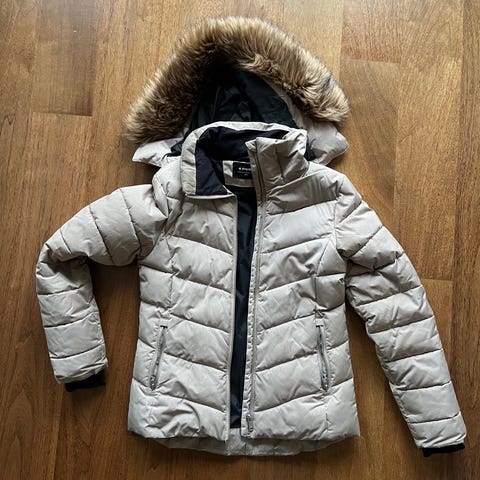 1:Peak performance. Fodrad jacka med ”päls”luva. Väl använd men i bra skick.