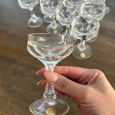 Säljer 11 stycken eleganta avec-/likörglas i äkta blykristall (24 % bly) från samma tillverkare som tidigare visade glas (Västtyskland).