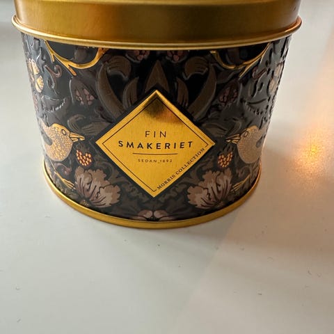 Fyra stycken bordstabletter och sex stycken glasunderlägg från William Morris "strawberry theif".