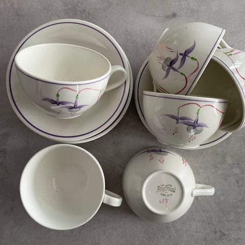 12 koppar Solöga med fat 1900-tal