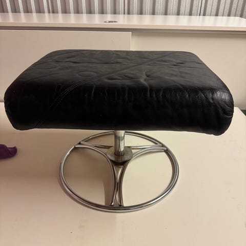 Säljer en IKEA ALVROS fotpall (ottoman) i vitt äkta läder. Mycket sparsamt använd, då jag aldrig fått riktigt plats för den vid soffan.