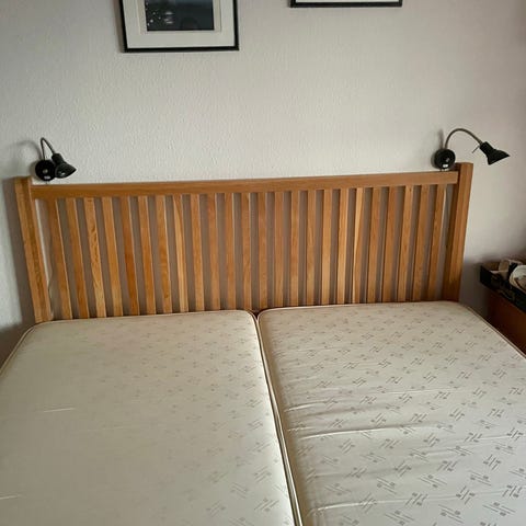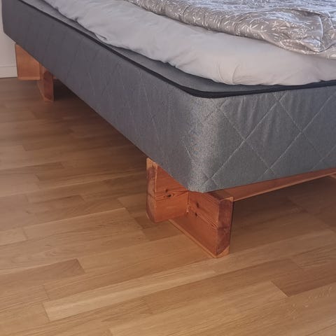 En sängbotten (med madrass och 4x10 cm träben om önskas + helt nytt överdrag till sängbotten) bortskänkes.