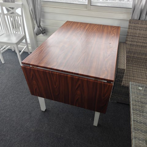 Mörkbrunt/svart bord med en extra skiva. Plats för 4-6 personer