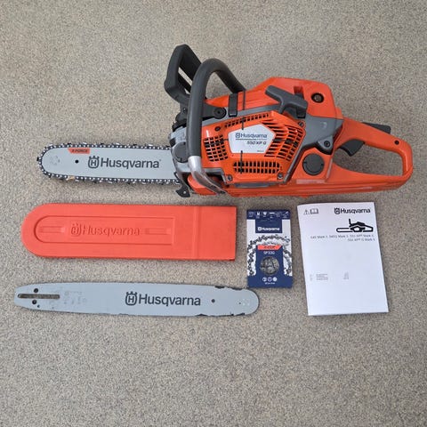 Mycket fin och sparsamt använd proffsåg som jag varit väldigt mån om. Få drifttimmar då jag använt den som andra såg. Fällt enstaka träd om året. Servad regelbundet och körd enbart med Aspèn. Aldrig varit konstigheter. Helt nytt X-Force orginal svärd medföljer.