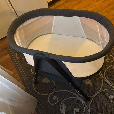 Går att fälla ihop i väskformat och medföljande myggnät skyddar barnet under sommaren.