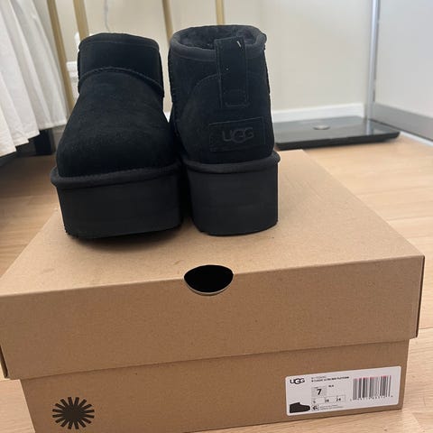 I princip nya svarta UGG’s platform strl 39. Köpts förra vintern på Zalando. Använda vid 2 tillfällen, säljer då de är för breda.