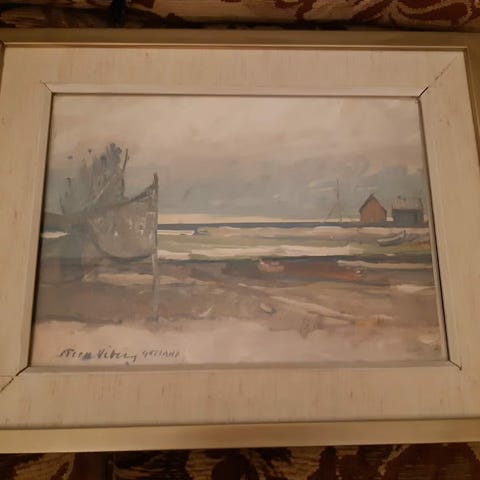 3 st tavlor 57 x 57, tryck på målarduk (från IKEA) liknar ett havsmotiv (säljes i hop alla 3)