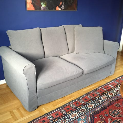 IKEA Friheten grå bäddsoffa med förvaring. Inköpt 2020, mindre slitage men allmänt bra skick.