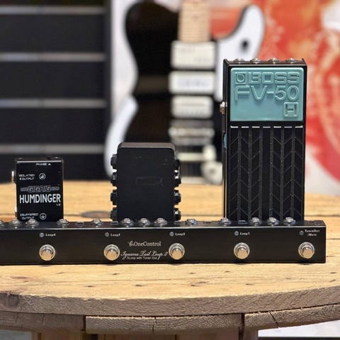 Pedalbord 40x30 med inbyggd strömförsörjning. Inputjacket är trasigt men går säkert att laga. Pedalbordet går ju givetvis att använda som det är ändå. Mycket lätt.